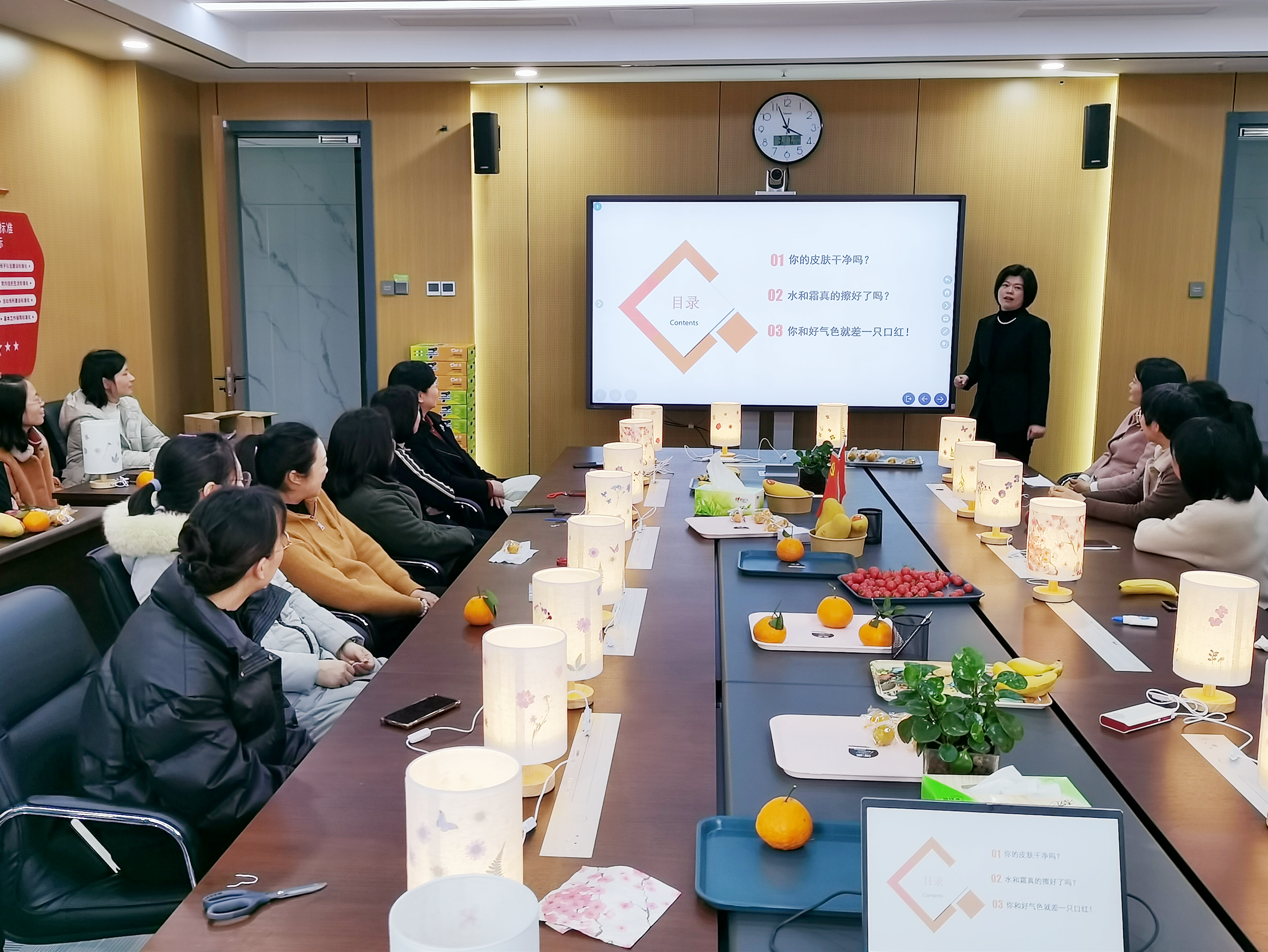 二是開(kāi)展現(xiàn)場(chǎng)美妝專題講座。工會(huì)女工委代表圍繞化妝步驟展開(kāi)講解,主要講解了清潔皮膚、美妝等步驟。提高美妝技巧,以一種更加積極的生活態(tài)度,去肯定自我、熱愛(ài)自我、尊重自我。